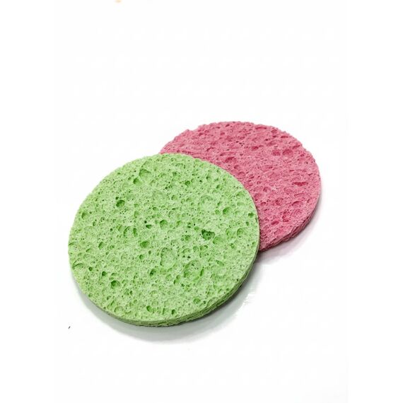 تحتوي على إسفنجتين دائريتين بلون وردي وأخضر، داخل عبوة قابلة للإغلاق بتصميم عملي وأنيق.