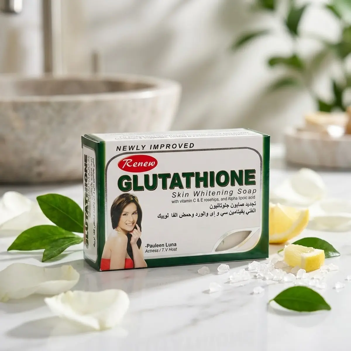 • تركيبة الجلوتاثيون المطورة (Newly Improved): تعمل بفعالية عالية على تفتيح لون البشرة وتوحيدها من خلال مكافحة التصبغات والبقع الداكنة.