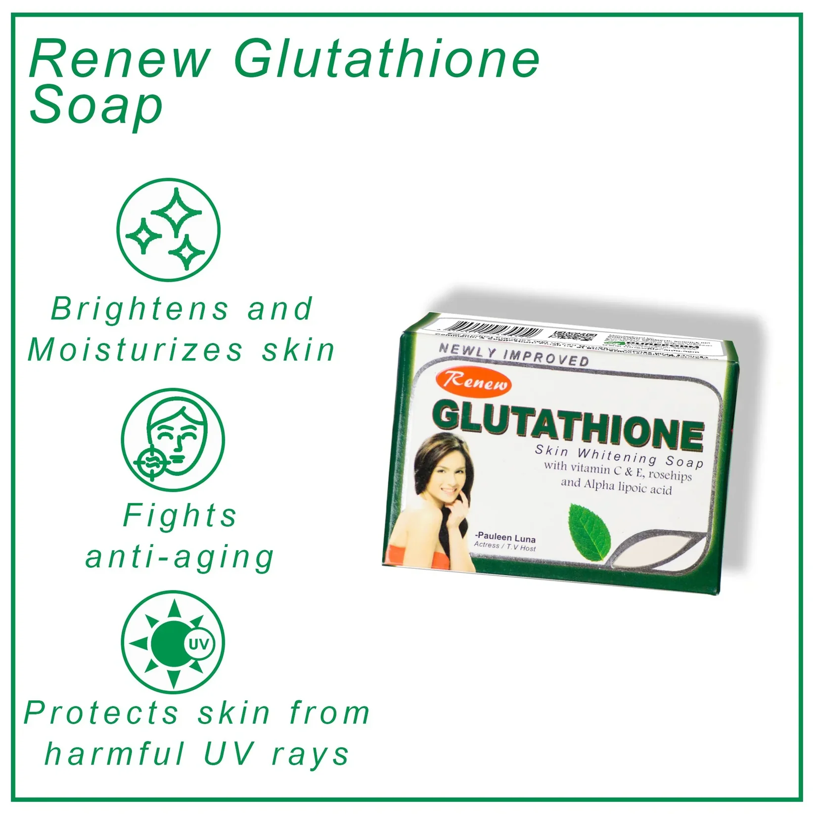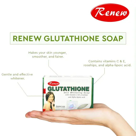 احصلي على بشرة ناصعة البياض وأكثر شباباً مع صابون رينيو (Renew) جلوتاثيون المطور. صُممت هذه الصابونة بتركيبة متقدمة تجمع بين أقوى مضادات الأكسدة لتفتيح البشرة بعمق وحمايتها من العوامل الخارجية.