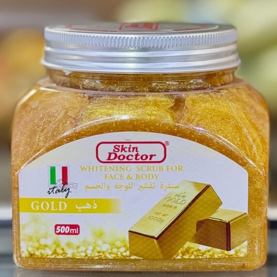 سنفرة "Skin Doctor" بالذهب تقدم تجربة فاخرة للعناية بالبشرة، حيث تحتوي على جزيئات الذهب الدقيقة التي تساعد على تنشيط الدورة الدموية، تفتيح البشرة، ومنحها إشراقة طبيعية. تركيبتها الكريمية اللامعة تقشر بلطف وتزيل الشوائب، مع تعزيز مرونة البشرة ومظهرها الصحي.