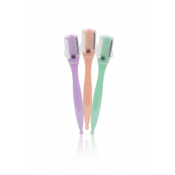 مجموعة شفرات حواجب احترافية بثلاثة ألوان ناعمة (بنفسجي، خوخي، أخضر نعناعي)، مصممة لتحديد الحواجب وإزالة الشعر الزائد بدقة وأمان.