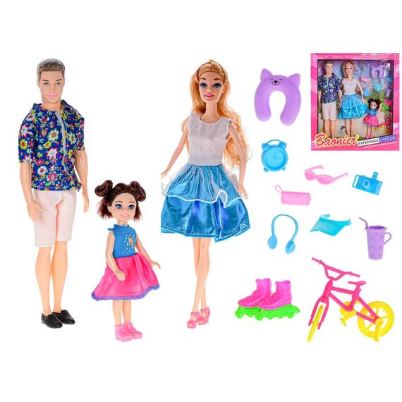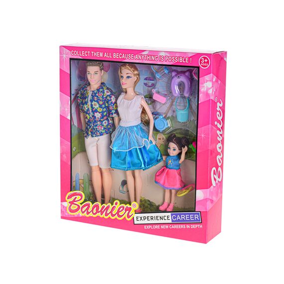 مجموعة عائلية متكاملة: تحتوي العبوة على ثلاث دمى تمثل أفراد العائلة (شخصية الأب، شخصية الأم، وشخصية الطفلة الصغيرة)، مما يتيح محاكاة سيناريوهات أسرية واقعية.