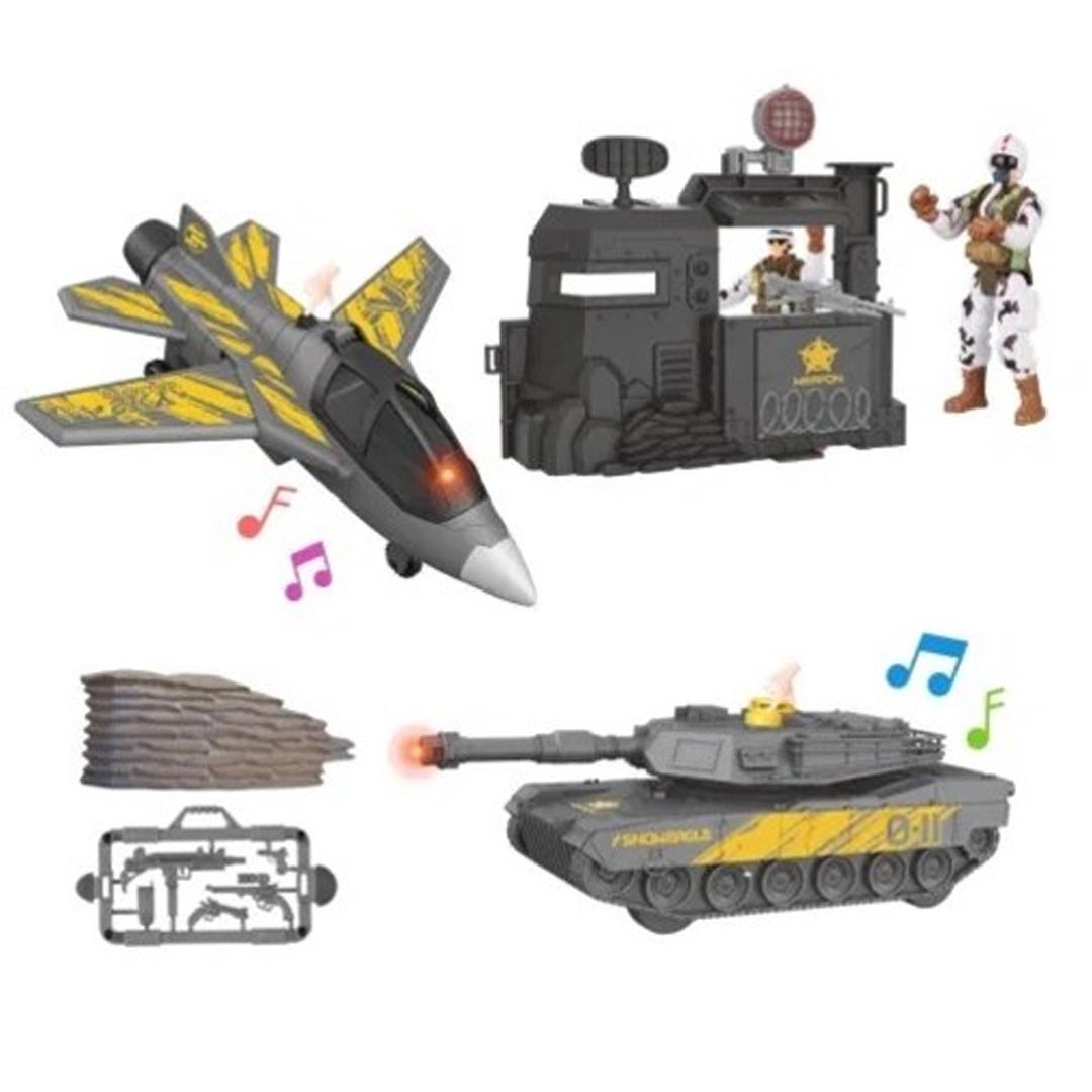 • مركبات قتالية تفاعلية: تحتوي على طائرة نفاثة (Jet) ودبابة (Tank) مزودتين بمؤثرات ضوئية (Lights)، حيث يظهر ضوء أحمر في مقدمة الطائرة وفوهة الدبابة عند التشغيل.