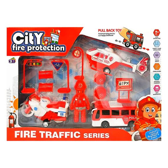 شجع طفلك على لعب دور البطل مع مجموعة "حماية المدينة" المتكاملة. تم تصميم هذه المجموعة لتعريف الأطفال بمهام رجال الإطفاء وقواعد السلامة المرورية في آن واحد. تتميز المركبات بنظام "السحب للخلف" (Pull Back)، مما يضيف حركة وإثارة للعب، حيث تنطلق المركبات مسرعة بمجرد سحبها للخلف. إنها المجموعة المثالية لدمج المرح مع تعلم القيم النبيلة كالمساعدة والشجاعة.