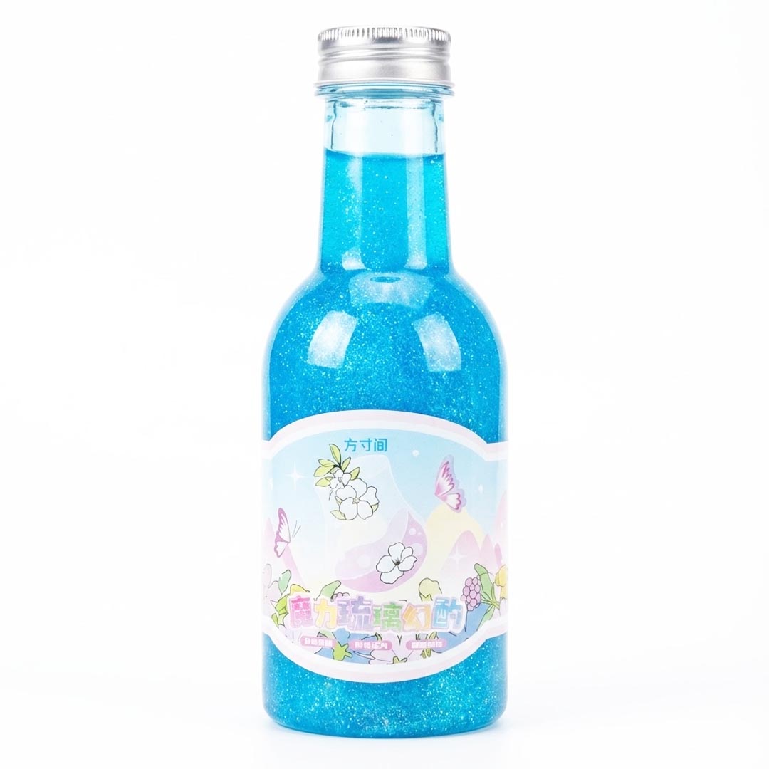 • مظهر لؤلؤي خلاب: يتميز السلايم بلون أزرق غني وكثافة عالية من الجليتر الناعم، مما يعطي تأثيراً بصرياً مبهراً يشبه حركة الرمال السحرية داخل العبوة.