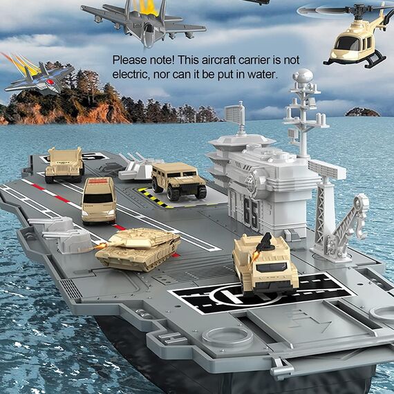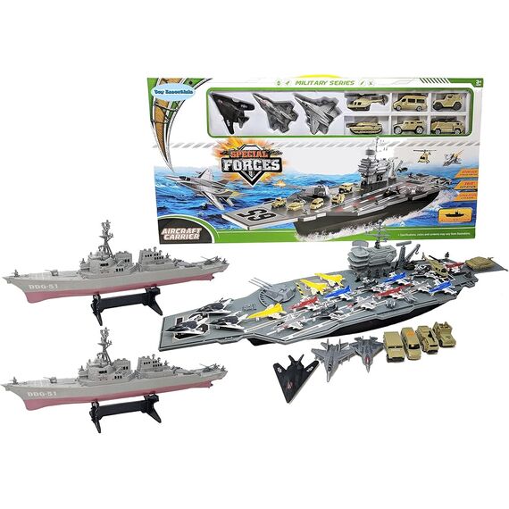 امنح طفلك قيادة المعارك البحرية الاستراتيجية مع هذه المجموعة العسكرية الضخمة "Special Forces". تتصدر المجموعة حاملة طائرات عملاقة بطول 70 سم، مصممة بدقة لتكون قاعدة انطلاق لأسطول جوي وبري متكامل. تضم المجموعة أيضاً سفينتي حماية (مدمرات)، بالإضافة إلى ترسانة واسعة من الطائرات الحربية والمركبات العسكرية، مما يوفر تجربة محاكاة واقعية لساحة المعركة البحرية والجوية.