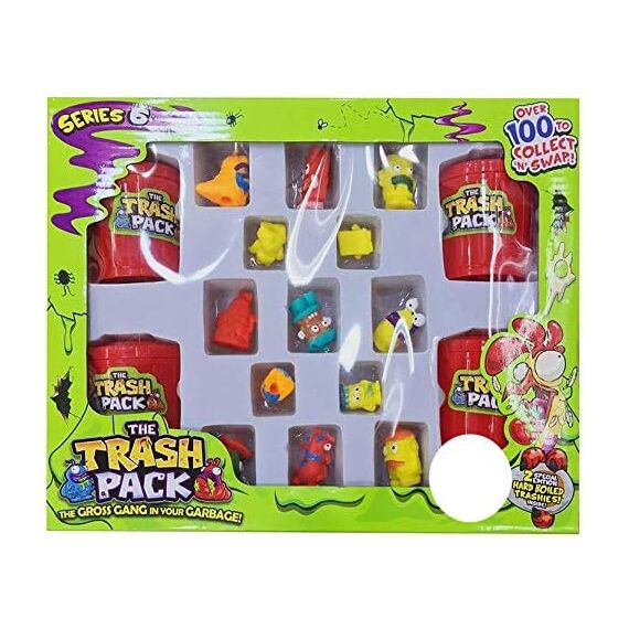 محتويات متنوعة: تأتي المجموعة مع تشكيلة من شخصيات "التراشيز" الصغيرة ذات التصاميم المضحكة والمقززة، بالإضافة إلى حاويات قمامة حمراء أيقونية لتخزينها وعرضها.