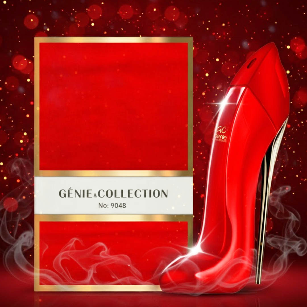 عطر "Génie No. 9048" يأتي بزجاجة فاخرة على شكل حذاء كعب عالي أنيق بلون أحمر لامع وكعب ذهبي، ليعكس الأنوثة، الفخامة، والجرأة. تصميمه الفريد يجعله قطعة ديكور مثالية، ويمنح العطر حضورًا بصريًا لا يُنسى.
