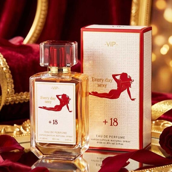 عطر "VIP Every Day Sexy" هو تركيبة جريئة ومثيرة مخصصة للبالغين، تجمع بين الأنوثة الحسية والطابع الفاكهي الدافئ. تصميم الزجاجة الشفاف مع الغطاء الأحمر واللمسات الذهبية يعكس طابعًا مغريًا، بينما الرمز "+18" يوضح أن العطر موجه لمن يبحثون عن تجربة عطرية ناضجة وجذابة.