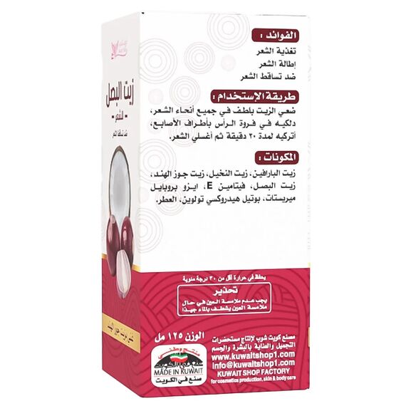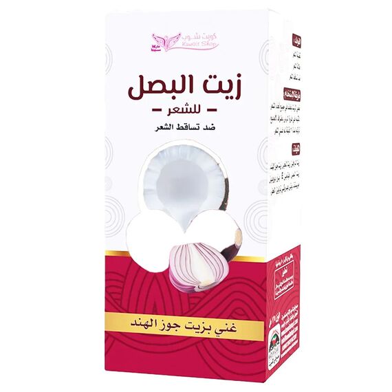 زيت البصل من كويت شوب هو تركيبة طبيعية فعالة تحتوي على مزيج من الزيوت المغذية مثل زيت البصل، زيت جوز الهند، وزيت النخيل، مدعمة بفيتامين E ومكونات مرطبة لفروة الرأس.
