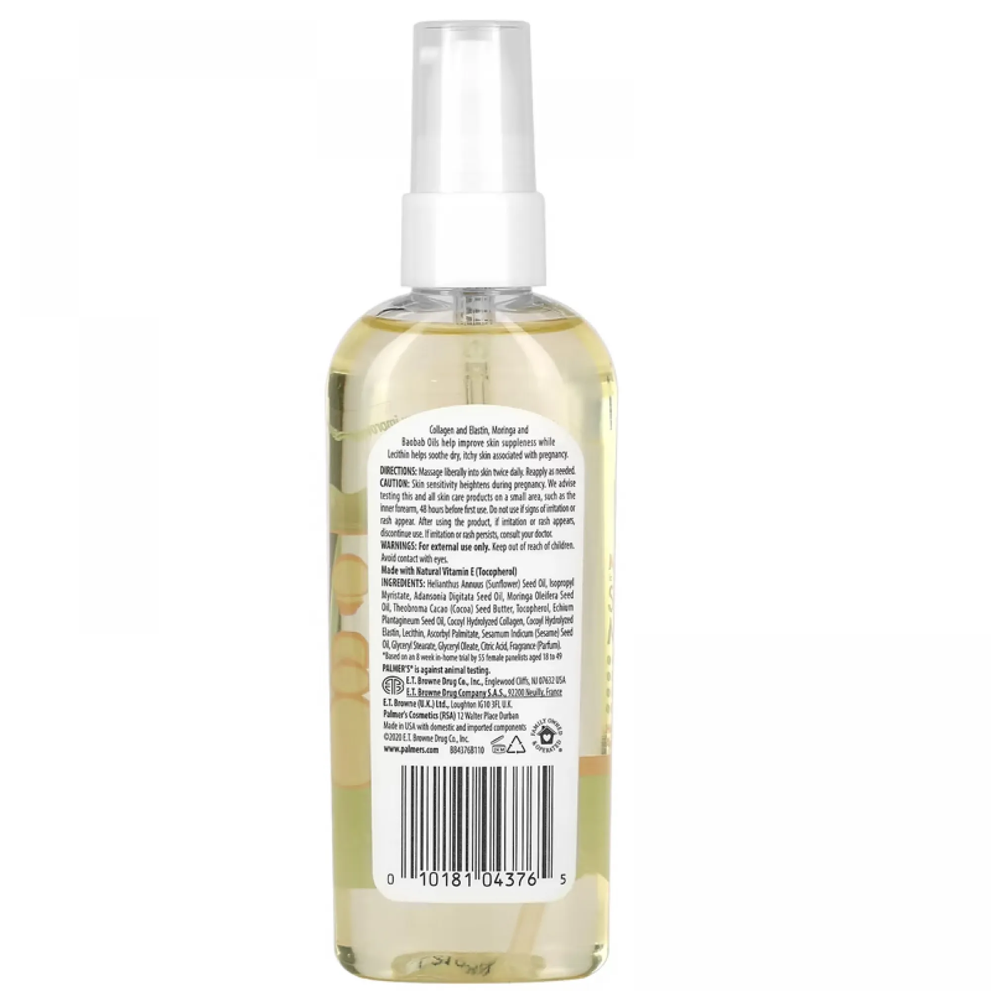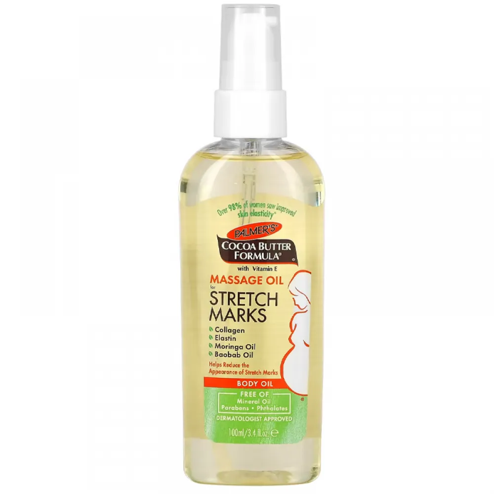 زيت Palmer’s Massage Oil هو علاج مغذي ومركز مصمم لتحسين مرونة البشرة وتقليل ظهور علامات التمدد، خاصة خلال الحمل أو تغير الوزن. يحتوي على مزيج فعّال من زبدة الكاكاو، فيتامين E، الكولاجين، الإيلاستين، زيت المورينغا، وزيت الباوباب، ويتميز بتركيبة خفيفة وسريعة الامتصاص تمنح البشرة نعومة فورية دون ملمس دهني.