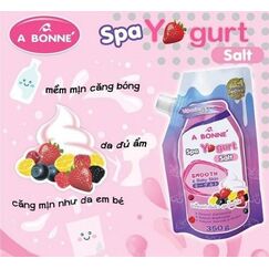 المنتج: A Bonne Spa Yogurt Salt (ملح سبا الزبادي من A Bonne). التركيز/المكونات النشطة: الزبادي (اللبن) وفيتامين B3. الوزن الصافي: 350 جرام (350 g) . الخاصية الرئيسية: بشرة ناعمة وطفولية (SMOOTH & Baby Skin / سوتو يوغورت) . الفوائد الملحوظة: تقشير طبيعي (Natural Exfoliating) . تفتيح طبيعي (Natural Brightening) . نعومة طبيعية وإشراق (Natural Smooth & Radiant) . الشهادة: حاصل على Superbrands 2012-2013.