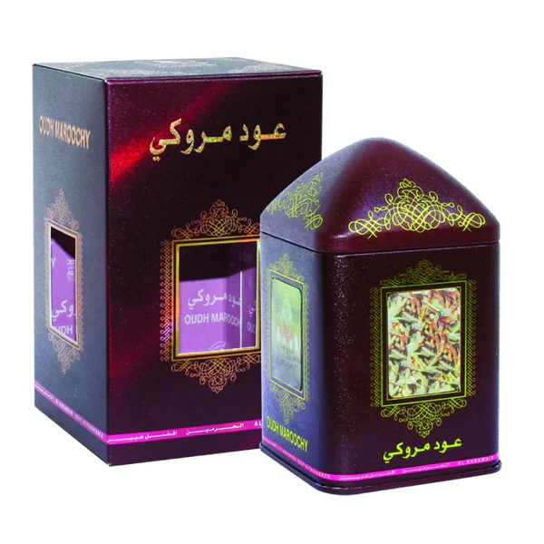 عود مروكي من الحرمين هو بخور فاخر مصنوع من رقائق خشب العود الطبيعي، يتميز بلونه المميز ورائحته الشرقية العميقة.