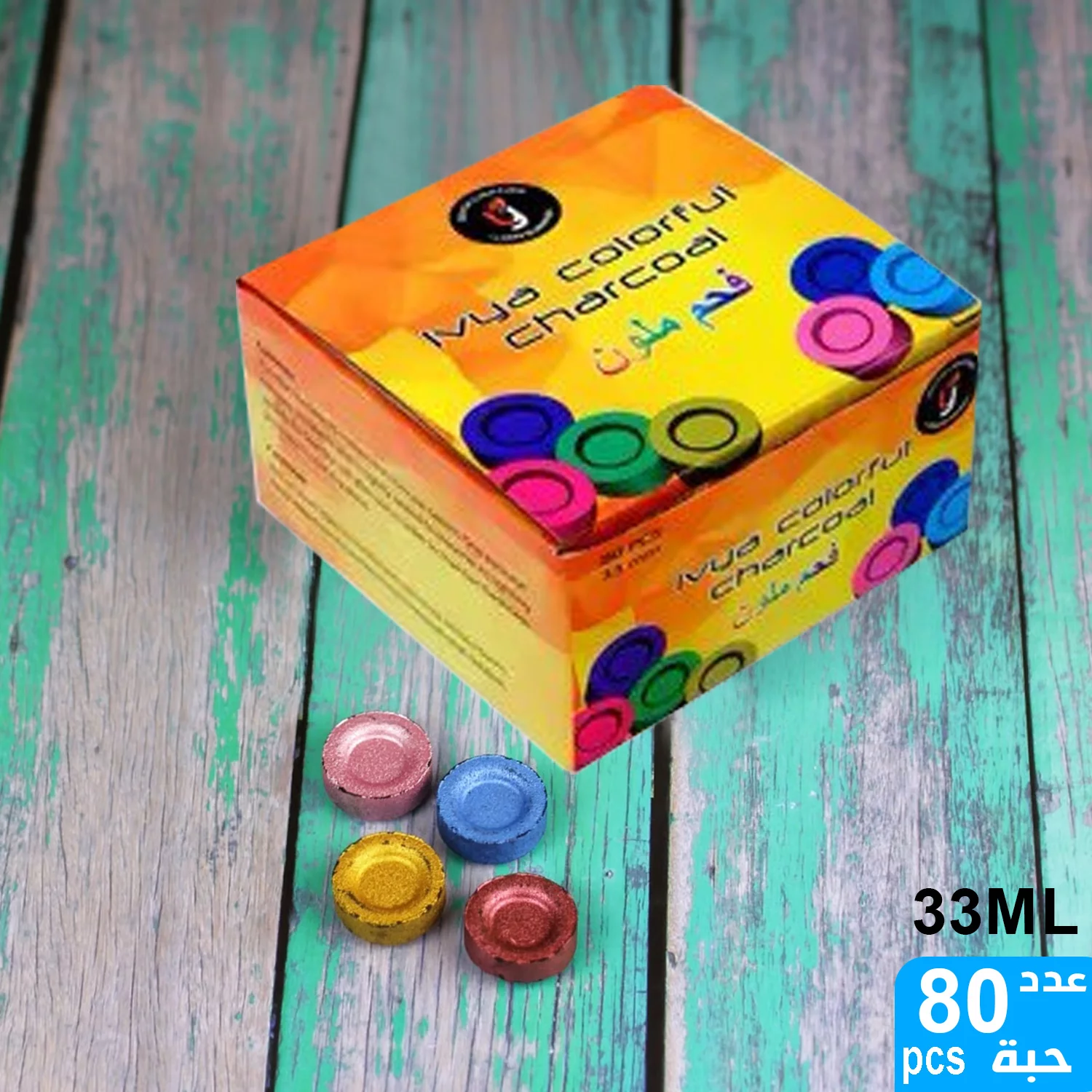 • عبوة تحتوي على 80 قرص فحم ملون