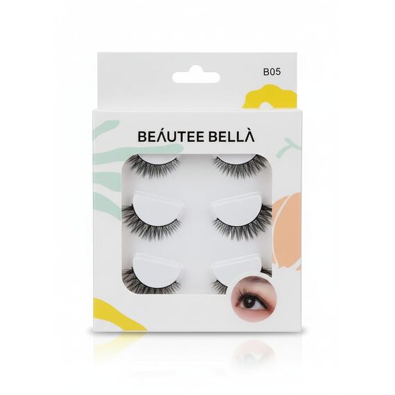 مجموعة "بيوتي بيلا" الاحترافية – موديل B05 – تحتوي على خمسة أزواج من الرموش المصنوعة يدويًا من شعر الحصان الطبيعي، وتُقدم مظهرًا كثيفًا وجذابًا يُبرز جمال العينين بإطلالة أنثوية راقية. تصميمها المتوازن يُضفي لمسة درامية ناعمة، ويُناسب جميع أشكال العيون، مما يجعلها مثالية للمكياج اليومي والمناسبات الخاصة.