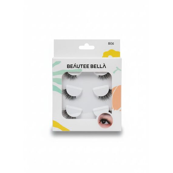 مجموعة "بيوتي بيلا" الاحترافية – موديل B06 – تحتوي على أربعة أزواج من الرموش المصنوعة يدويًا من شعر الحصان الطبيعي، وتُقدم مظهرًا كثيفًا وجذابًا يُبرز جمال العينين بإطلالة أنثوية راقية. تصميمها المتوازن يُضفي لمسة درامية ناعمة، ويُناسب جميع أشكال العيون، مما يجعلها مثالية للمكياج اليومي والمناسبات الخاصة.