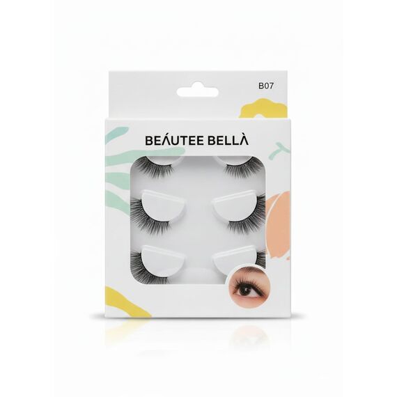 مجموعة "بيوتي بيلا" الاحترافية – موديل B07 – تحتوي على أربعة أزواج من الرموش المصنوعة يدويًا من شعر الحصان الطبيعي، وتُقدم مظهرًا كثيفًا وجذابًا يُبرز جمال العينين بإطلالة أنثوية راقية. تصميمها المتوازن يُضفي لمسة درامية ناعمة، ويُناسب جميع أشكال العيون، مما يجعلها مثالية للمكياج اليومي والمناسبات الخاصة.