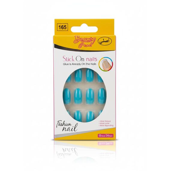 BEAUTY PEARL – 165 تقدم مجموعة من الأظافر اللاصقة الجاهزة للاستخدام، بلون أزرق لامع أنيق، تمنحك مظهرًا عصريًا وجذابًا دون الحاجة إلى أدوات إضافية.