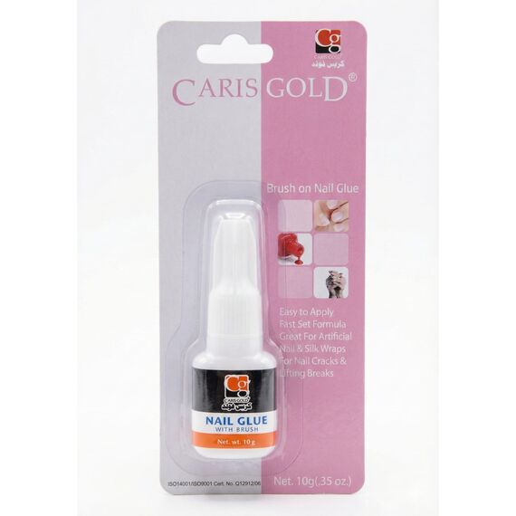 غراء أظافر احترافي من كاريس غولد، مزود بفرشاة تطبيق لسهولة الاستخدام وتوزيع دقيق.