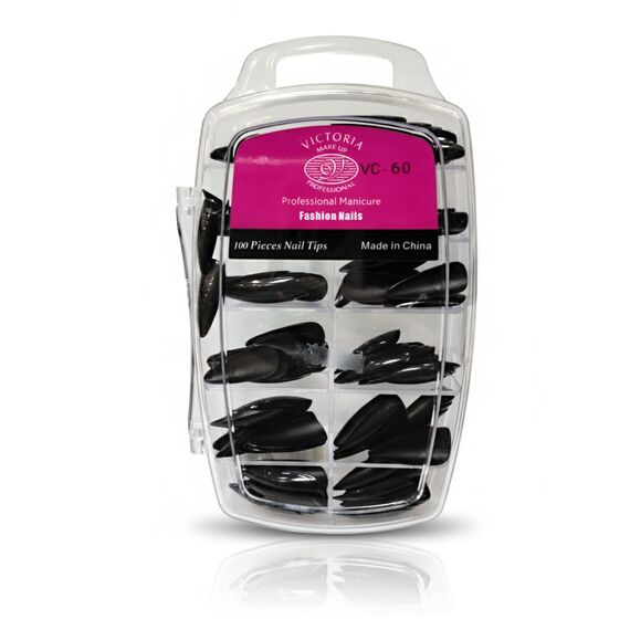 VICTORIA MAKE UP – VC-60 تقدم أطراف أظافر عالية الجودة بلون أسود جريء، مصممة خصيصًا للاستخدام الاحترافي في صالونات التجميل أو للعناية المنزلية.