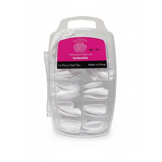 VICTORIA MAKE UP – VC-71 تقدم أطراف أظافر عالية الجودة بلون أبيض نقي، مصممة خصيصًا للاستخدام الاحترافي في صالونات التجميل أو للعناية المنزلية.