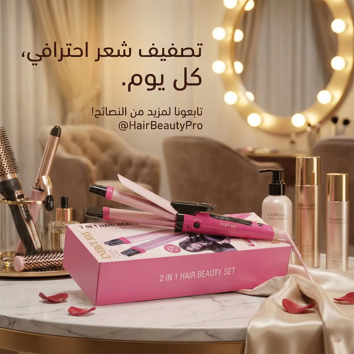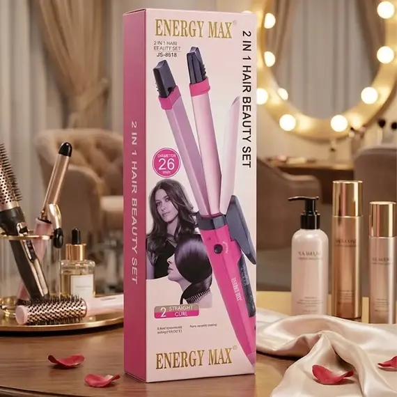 احصلي على إطلالات متنوعة واحترافية بجهاز واحد مع طقم تجميل الشعر 2 في 1 من Energy Max. يجمع هذا الجهاز المبتكر (موديل JS-8518) بين وظيفتي تمليس وتجعيد الشعر، مما يجعله الأداة المثالية لتحقيق تسريحات الصالونات الفاخرة في منزلكِ بكل سهولة.