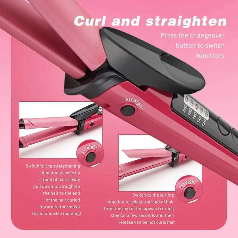 - تصميم مزدوج الوظيفة (2 in 1): يتيح لكِ الانتقال بسهولة بين وضع التمليس (Straight) للحصول على شعر انسيابي، ووضع التجعيد (Curl) لخلق تموجات جذابة.