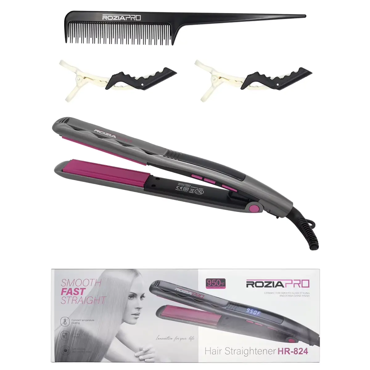 مكواة تمليس الشعر RoziaPro الاحترافية موديل HR-824 - حرارة تصل إلى 950 فهرنهايت
